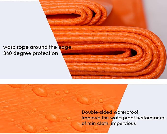 Some more details regarding what it includes: Tarpaulin plastic is 100% waterproof. They make a product that lasts a long time. Tarpaulin gives 100% protection from rain, heat, and sunlight. It is reinforced with aluminum eyelets and rope on all sides. Now some general instructions regarding the product: Keep sharp objects away from tarpaulin, like a knife or anything like that. You can check the availability of all tarpaulins just by clicking on the title of the product, and you can place an order for the product if you need a slightly bigger size. It's a product you will not regret buying...